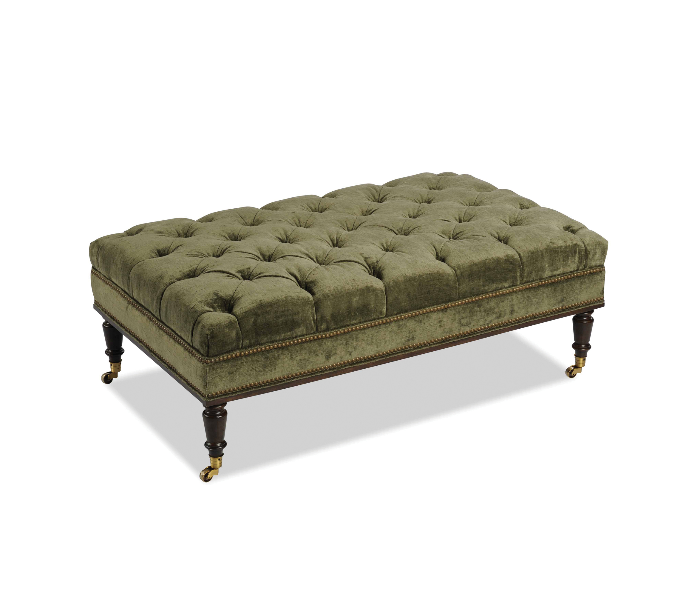 Tufted top with Buttons / Kenan Leg with T-cup casters /Wooden border around base