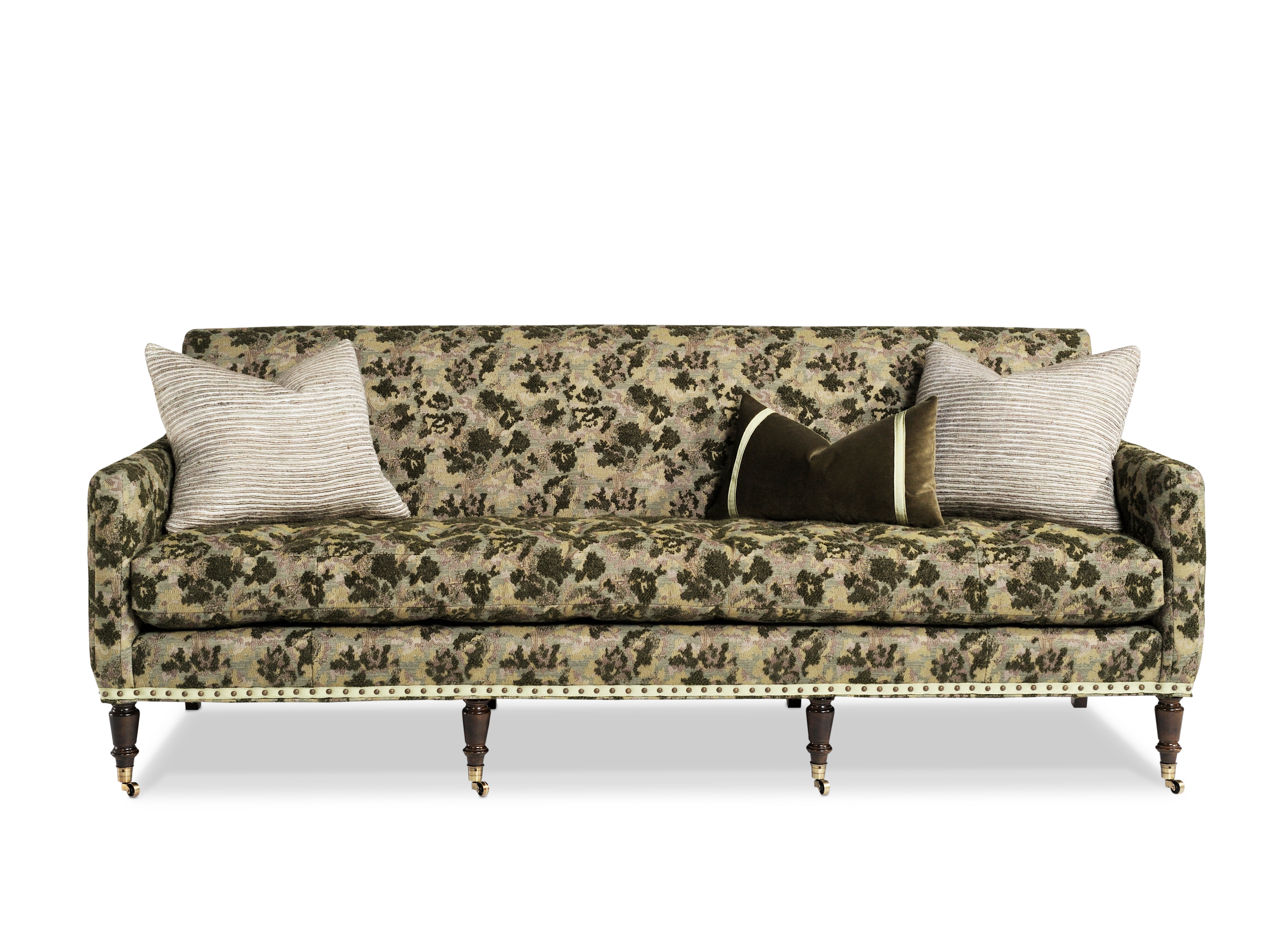 Edge stitched/(1)K-22 Kidney pillow/(2)23x19" Throw Pillows/ Tight back/Tufted/Bench seat cushion/Small Antique Brass tea cup casters