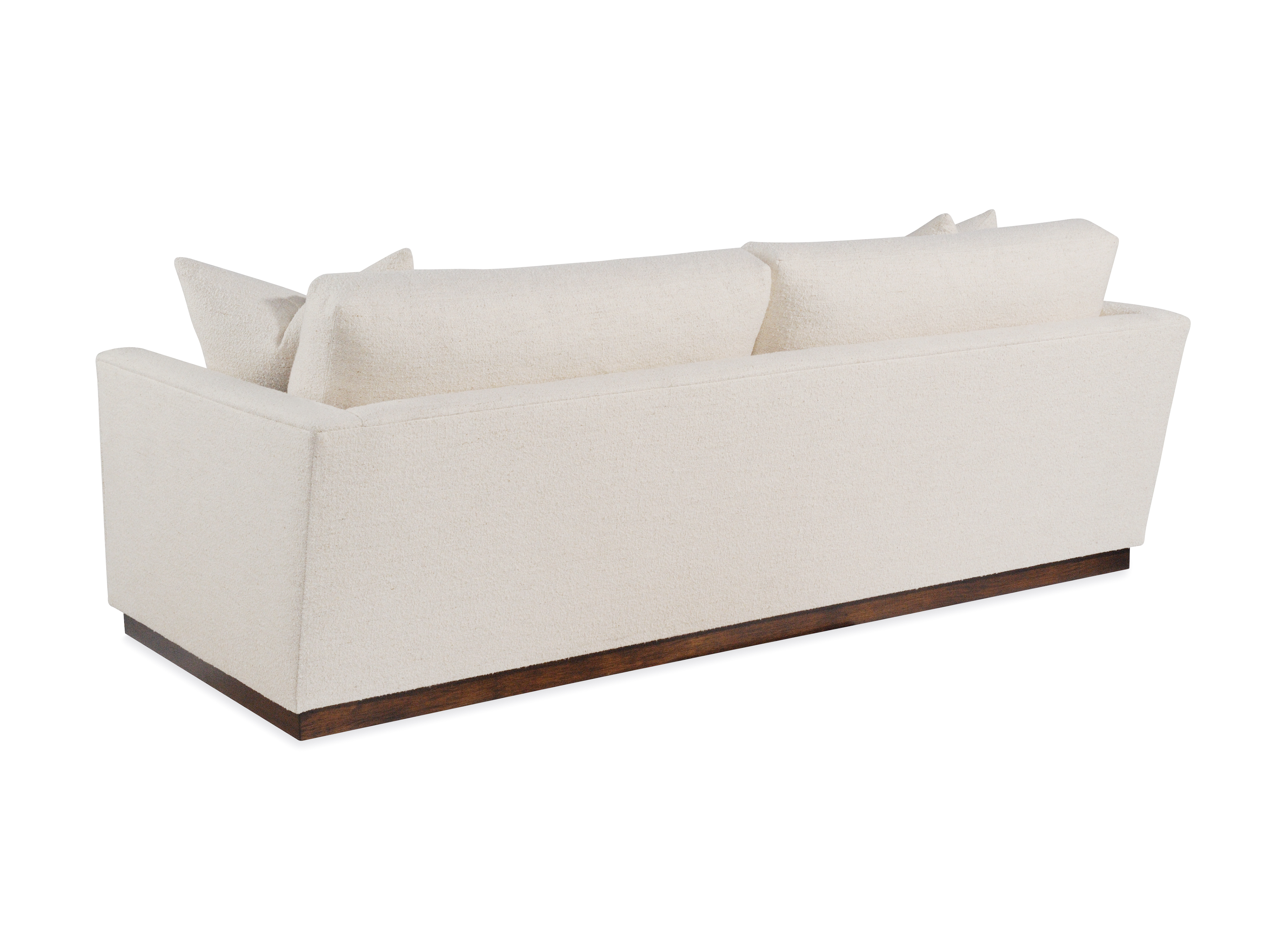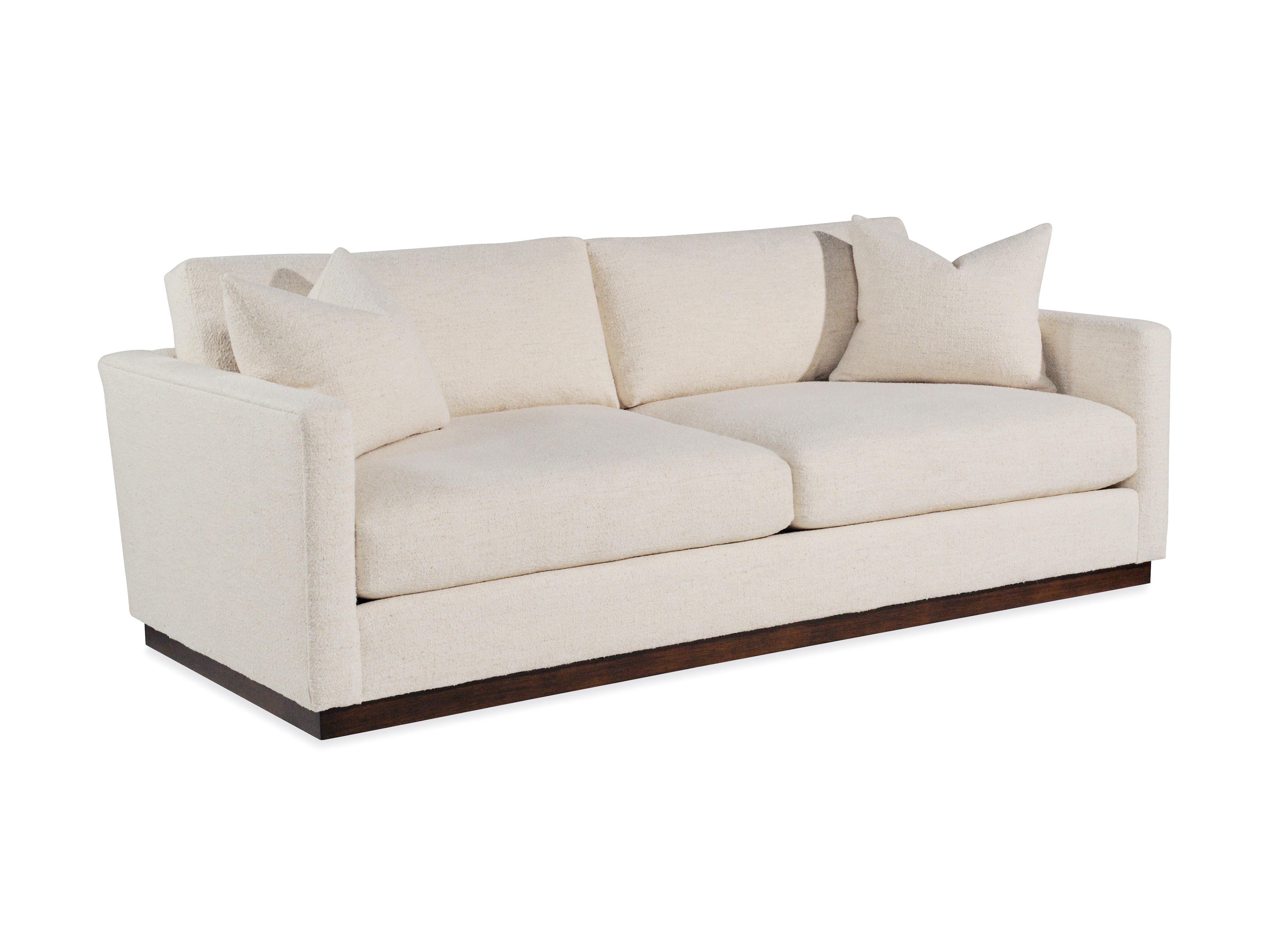 Loose back cushions / Edge stitching / (2) 23x19 Throw Pillows / Plinth wooden base