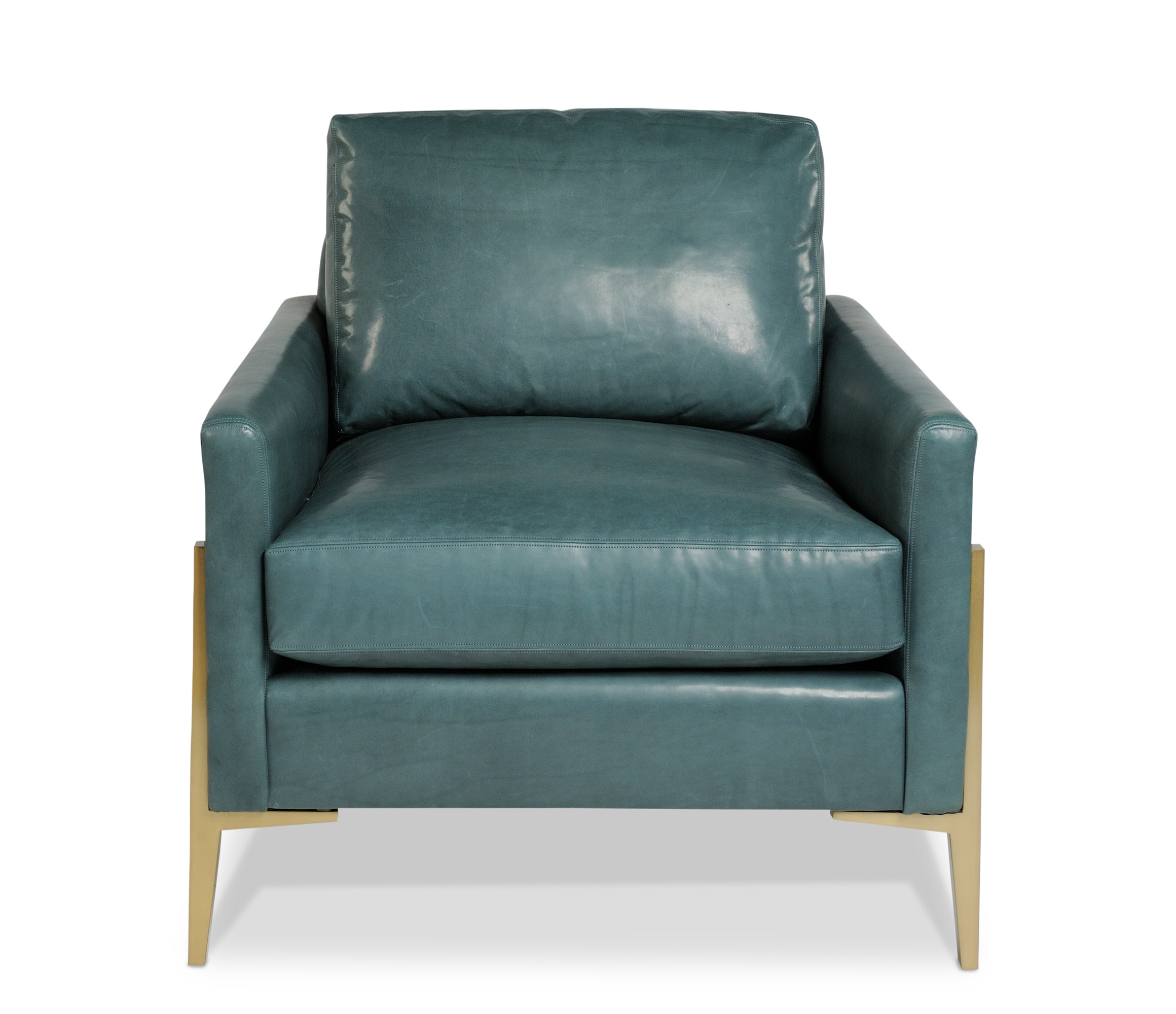 Edge stitching / Velcro attached back cushion / Aged Brass metal frame
