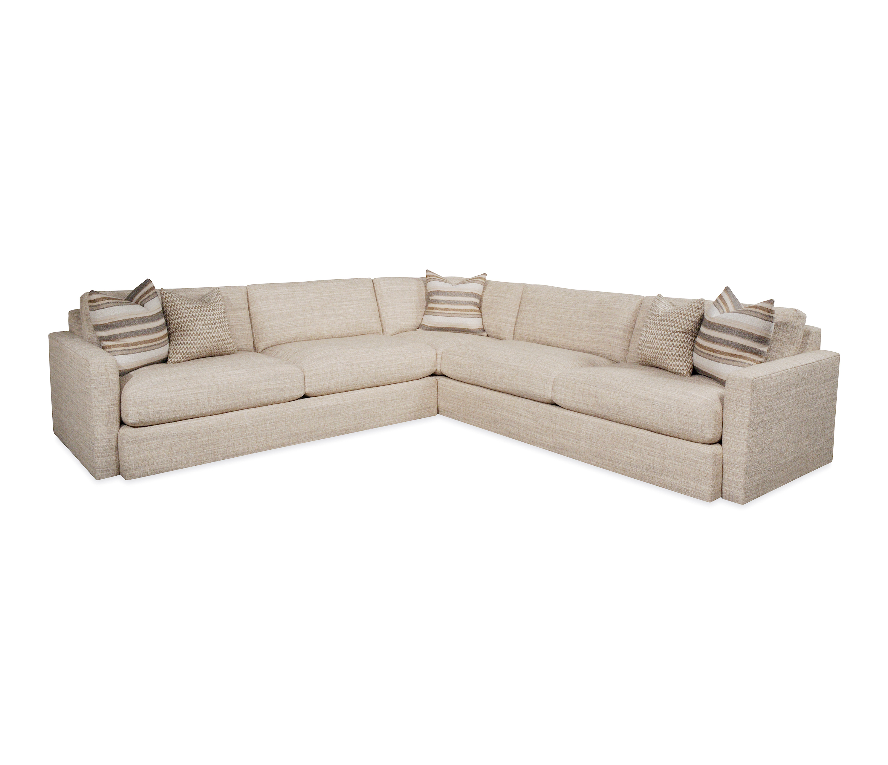 Loose back cushion/Edge stitch on seat cushion, back cushion & pillows/Upholstered to floor