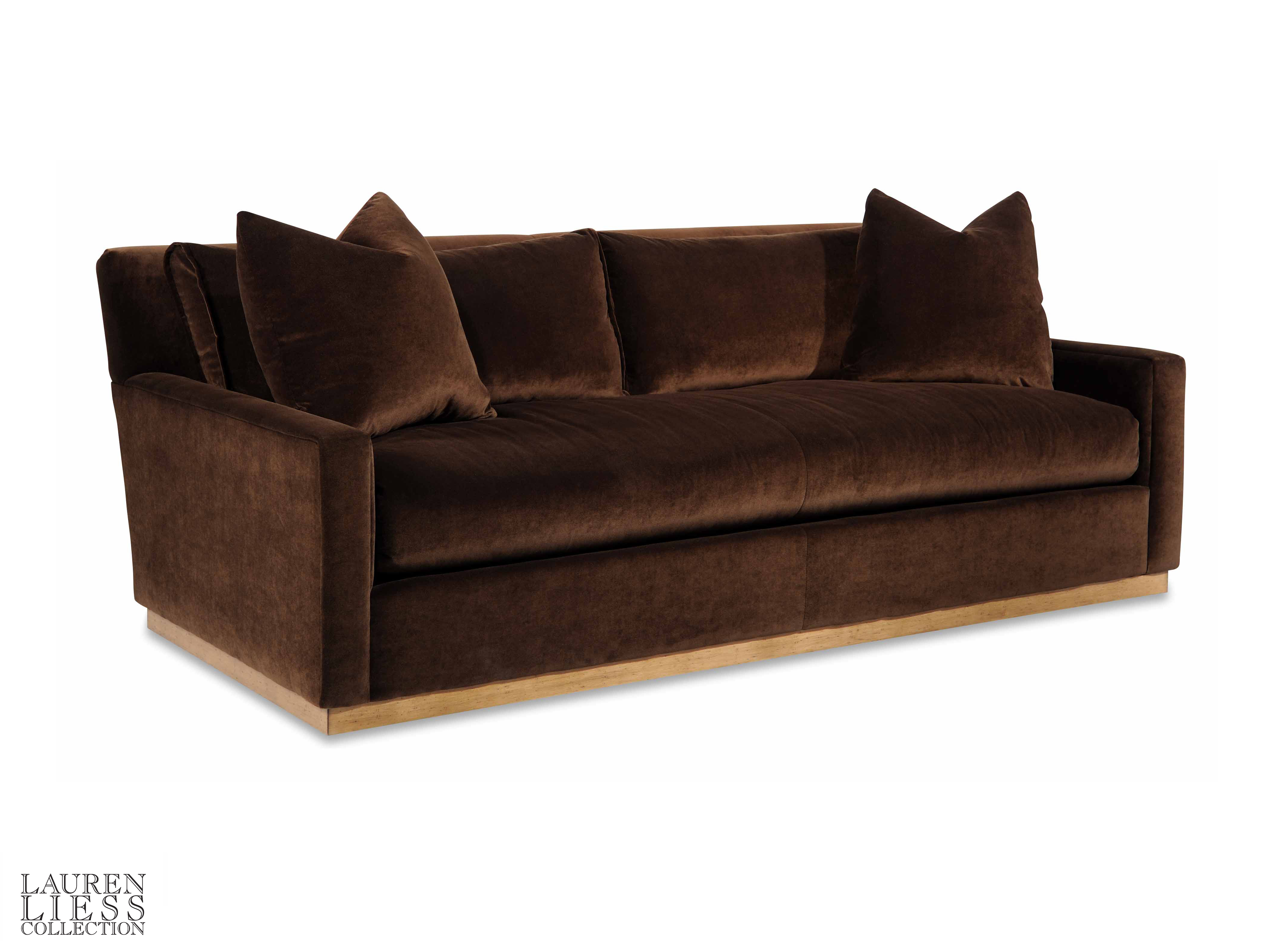 Bullnose, Bench seat cushion / Bullnose, Loose back cushions with flange /Plinth base /10/90 Down Back cushions /(2)21"Throw Pillows