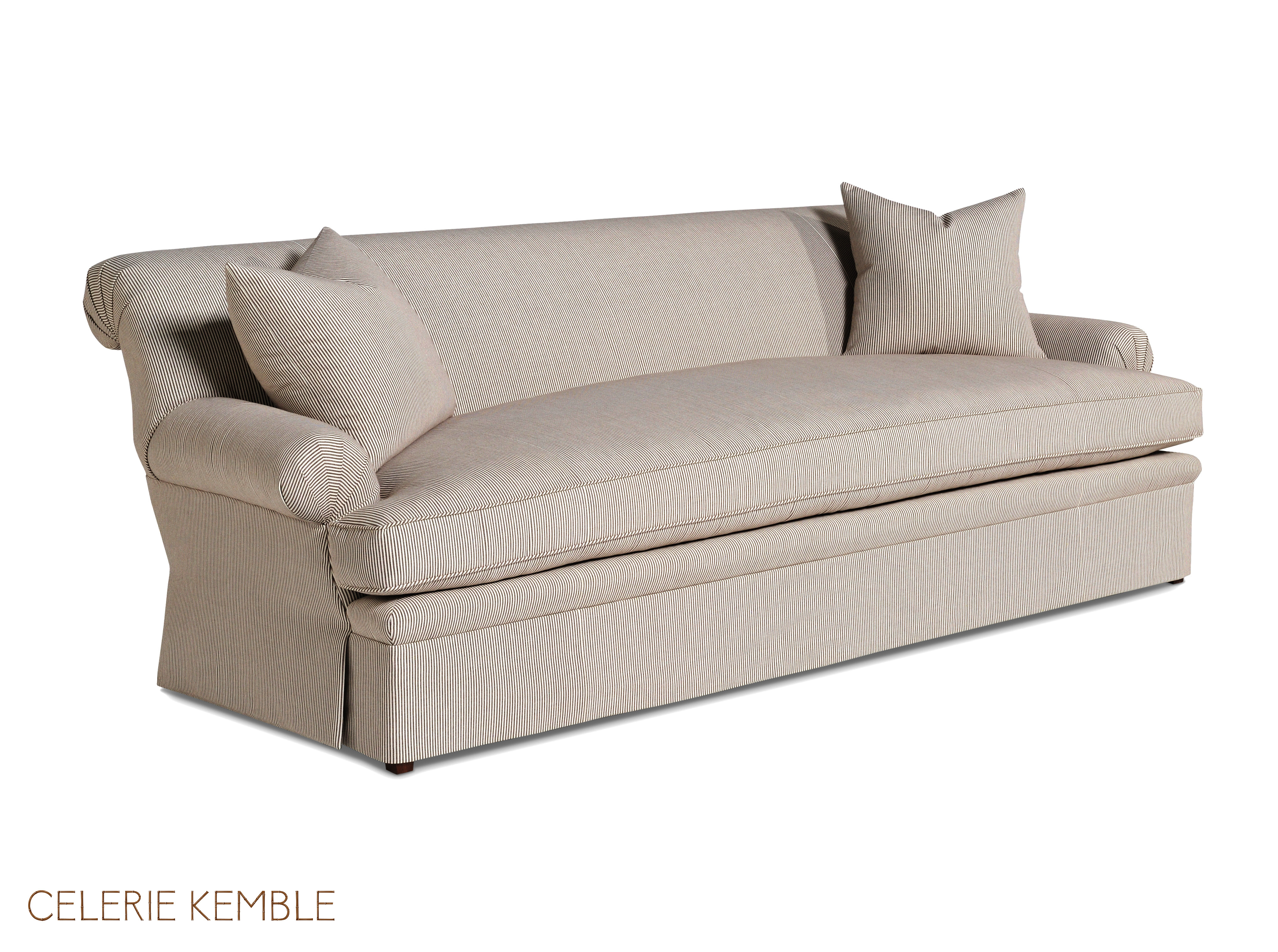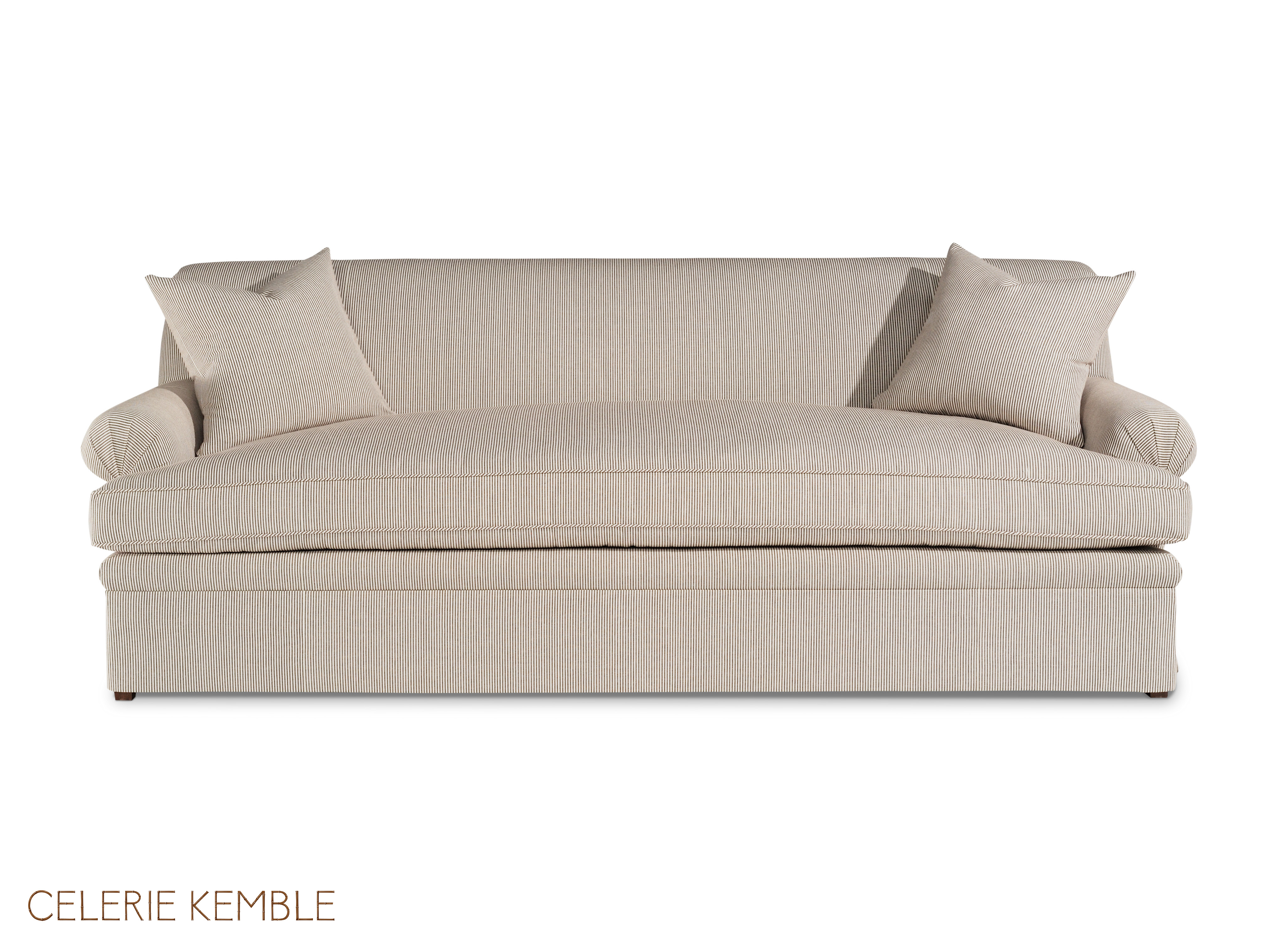 Tight back / (2) 19" Throw Pillows / Bench seat / Waterfall skirt