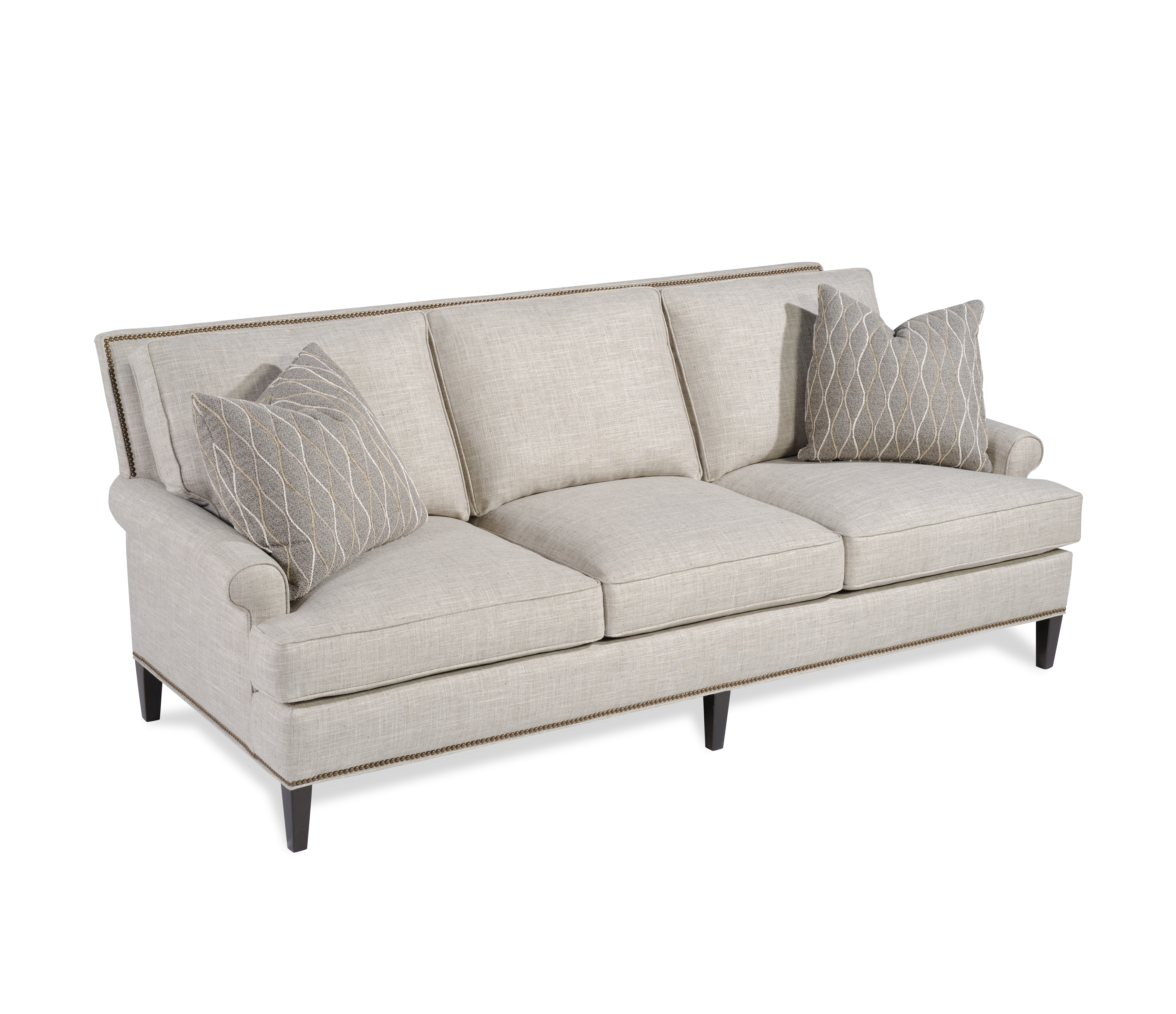Options Shown: 1/2" Nails on inside back & base/ Contrasting fabric on throw pillows.